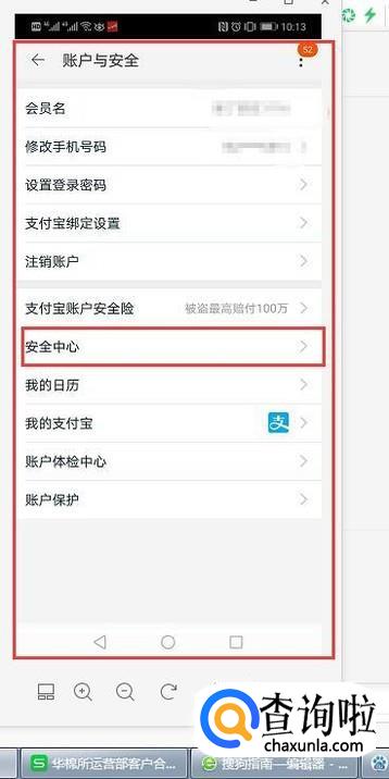 在账户与安全中选择安全中心
