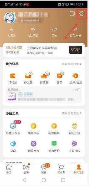 下载淘宝app,登陆会员,选择我中的设置