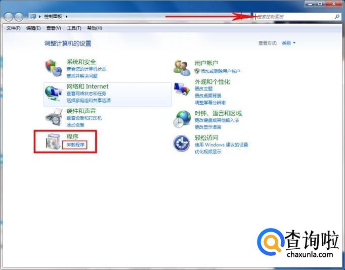 点击“卸载程序”选项(也可以在右上角搜索框输入“卸载程序”搜索找到并进入)