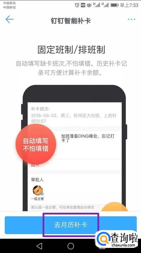 弹出的界面,我们点击去月历补卡;