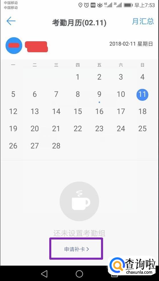 弹出的界面,我们点击下方的申请补卡;