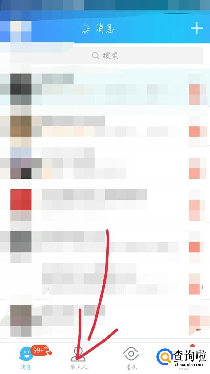 点击最下方那一排,从左往右数第二个“联系人”按钮,如图1箭头所示。会进入一个新的界面,如图2所示