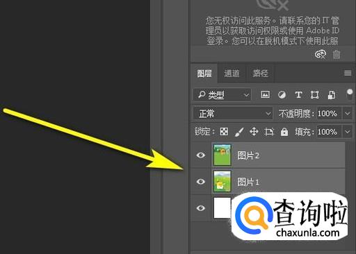 鼠标移到图层面板这里,同时选中图片1与图片2,这两个图层。