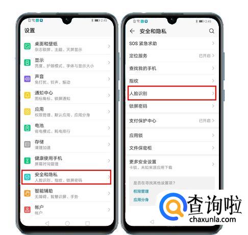 打开设置,点击安全和隐私 > 人脸识别,输入锁屏密码。然后点击开始录入,按照屏幕提示录入人脸。