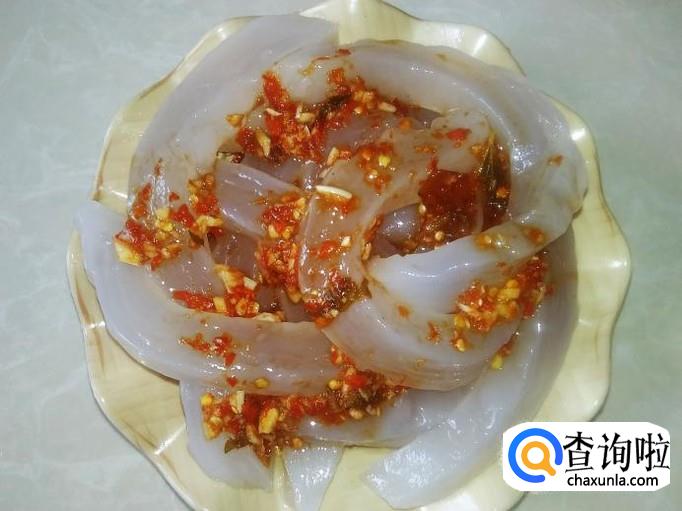 木薯淀粉200克,自做的酸梅紫苏酱1勺,蒜蓉、生抽、香油适量。