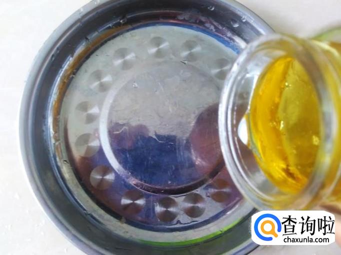 用一个碟子倒适量的花生油进去全部刷过。
