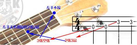 看这个图就能很直观的理解该怎么按弦和弹奏了。