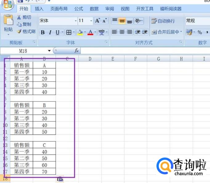 想要合并显示,首先,我们得对这组数据进行合并,如图所示,进行合并;