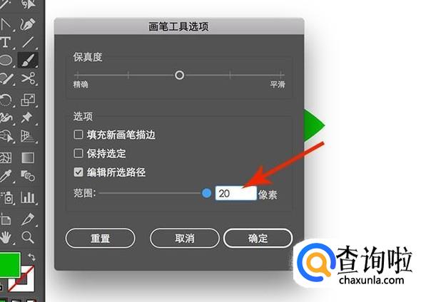 接下来看一下实际效果,选择画笔工具,回车键进入选项界面,将范围调整为20%。