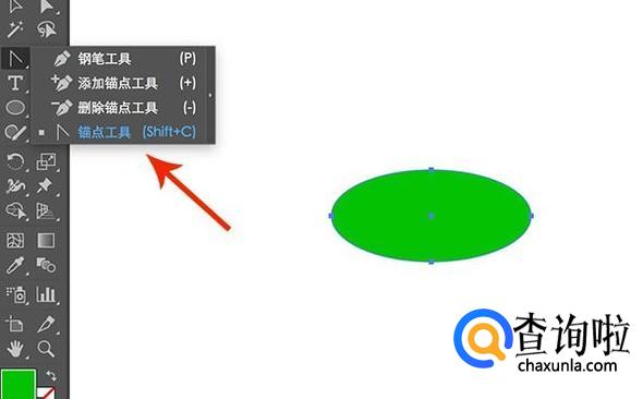 椭圆绘制完成之后,在左侧工具栏中选择“锚点工具”