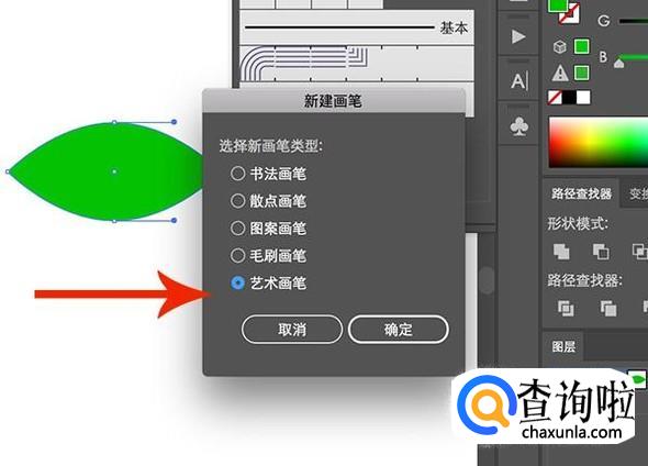 在弹框新建画笔选项中,将新画笔类型选择“艺术画笔”,点击确定进行保存。