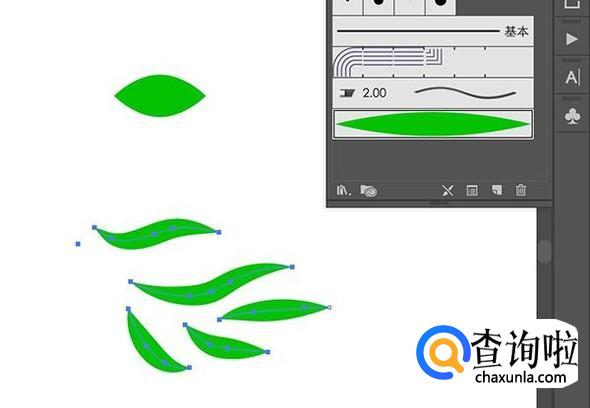 接着用画笔工具在画板上绘制相应的路径,我们就能够快速得到叶子了。