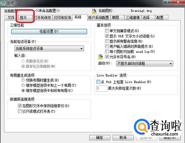 出现如图所示的“选项”面板,我们点击其中的“显示”标签。