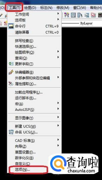 首先,我们打开CAD经典界面,可以看到,当前背景颜色是黑色。我们点击菜单栏“工具”,下拉菜单中选择“选项”。