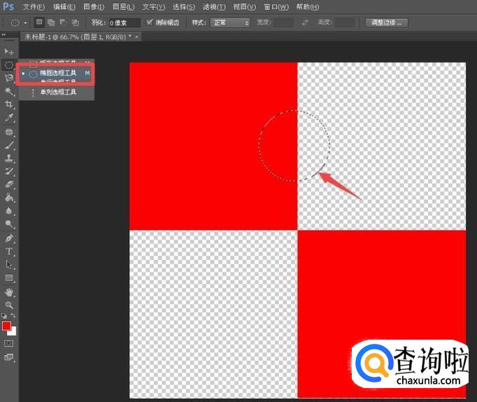 在工具栏中选取椭圆选框工具,按住Shift键,如图所示绘制一个圆形选区;