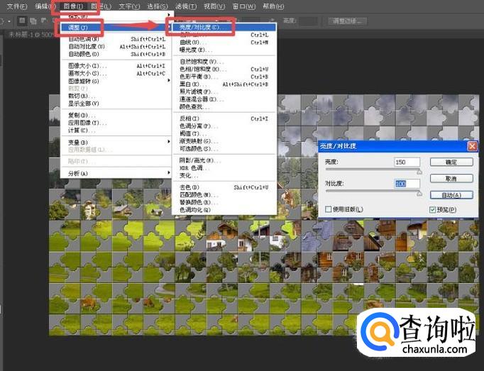 接着在点击执行“图像-调整-亮度/对比度”选项命令,如图所示设置参数;