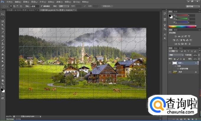 应用矩形框选工具、魔棒工具、以及对图层样式、图层混合模式的设置,将素材图片简单的制作成拼图效果。