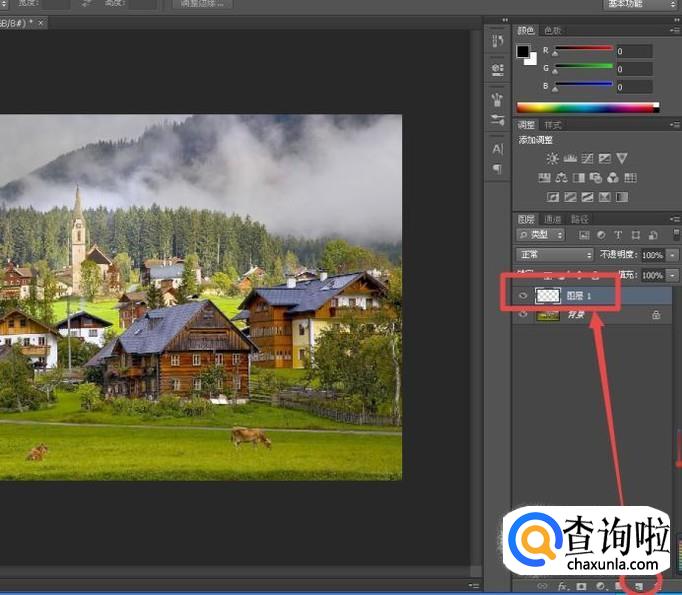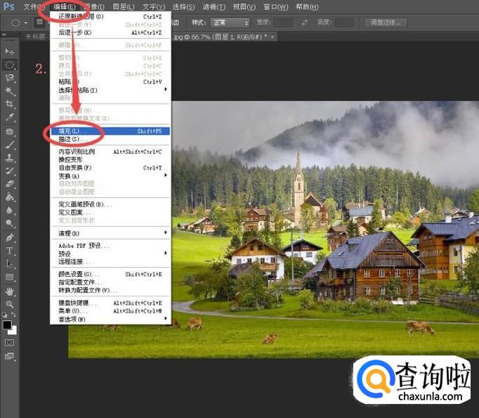 打开素材照片,点击“创建新图层”按钮新建图层,再点击“编辑-填充”命令;