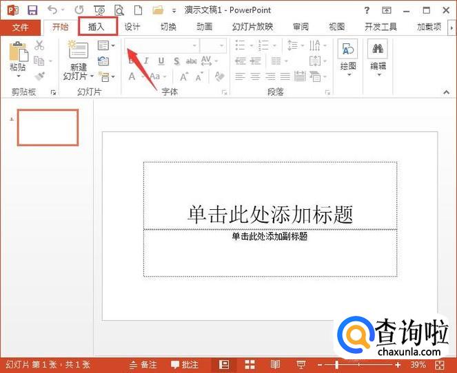 将PPT这款软件打开,然后在菜单那里找到插入选项,如图所示: