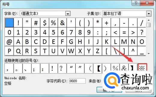 点击符号选项在弹出的对话框我们找到需要的特殊符号,如图所示:
