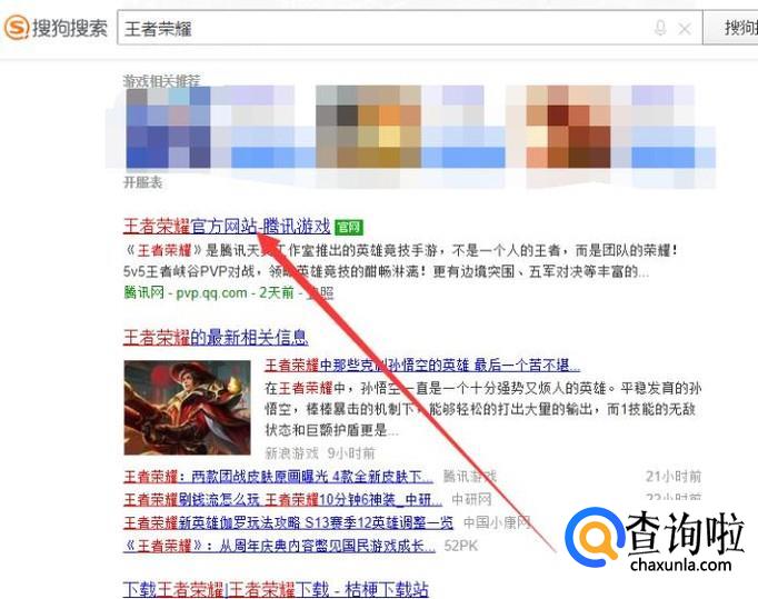 进入之后,搜索王者荣耀,点击并进入,如图所示。