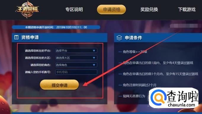 阅读完之后,进入填写好游戏账户的信息,点击“提交申请”即可,如图所示。