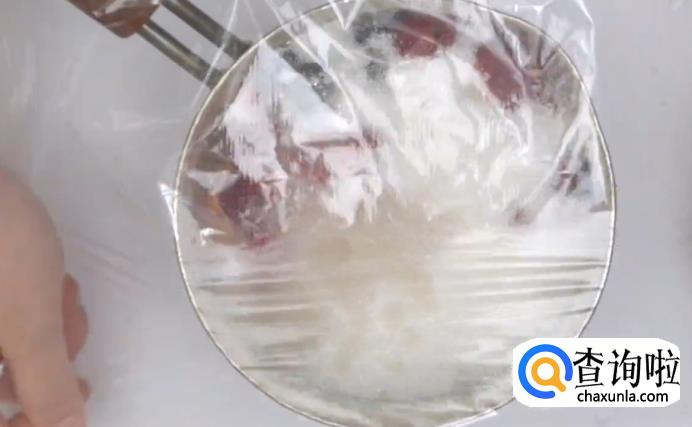 用保鲜膜将装水果的容器密封起来,放在一旁静置5个小时。