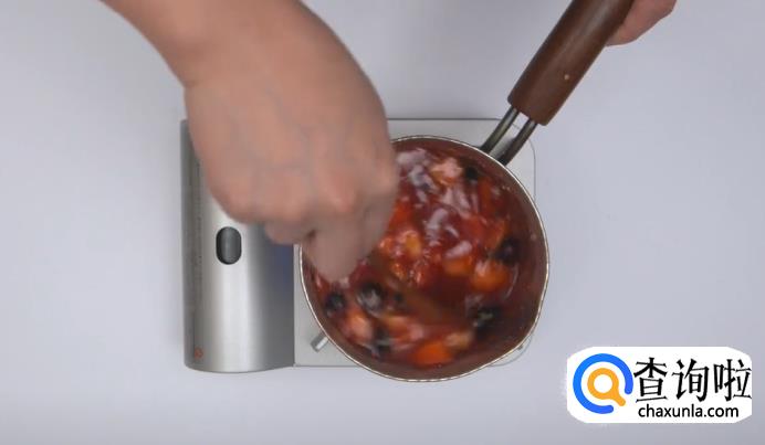 果肉煮至浓稠状态时即可关火,将煮好的果酱装入瓶中密封好。