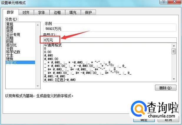 点击自定义选项在其设置内我们输入单位样式,如图所示: