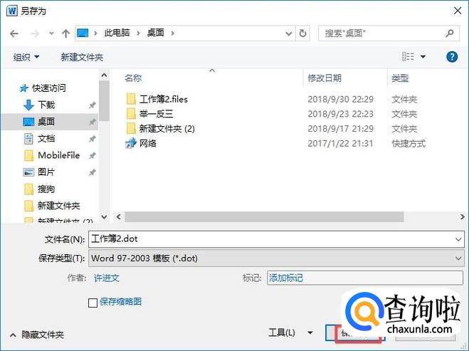 然后我们点击保存类型边上的下拉箭头,弹出的界面,我们点击word;