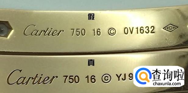 卡地亚手镯内部有刻字,正品的字体比较粗,比较圆滑,刻印比较深。而仿品的字体比较细长,刻印的也比较浅。