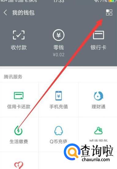 在“钱包”页面,点击图示位置进入下一页面,如图所示。