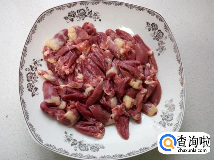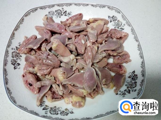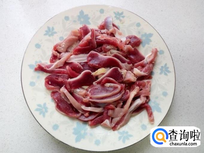 鸡胗用水清洗干净,切成薄片。