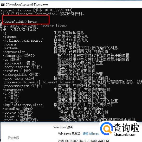 我们使用命令java -version来查看jdk的版本,然后分别使用javac和java命令查看jdk的环境变量是否成功,若成功你将会看到下图所示的信息。