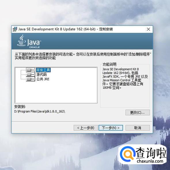我们在下图一的步骤中,点击“更改”按钮可以选择修改安装的路径,若不选择默认安装在C盘。接下来的安装步骤中会提示可修改安装JRE的路径,我们在JDK的安装路径下创建jre带版本号的文件夹,用于安装jre,名字要和安装jdk时自动生成的jre文件夹区别开,当然也可以选择默认安装在C盘。剩下的步骤直接选择“下一步”即可,最后会提示安装完成。