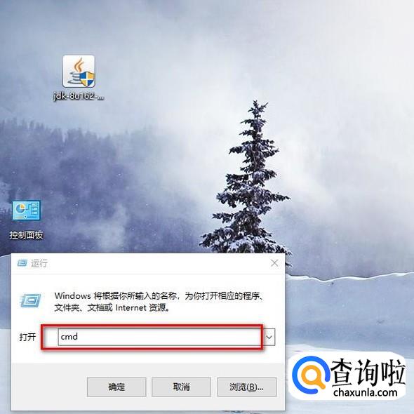 接下来我们在命令行中查看是否安装配置成功了,我们使用快捷键Win+R进入到命令行,输入cmd后按回车键即可。