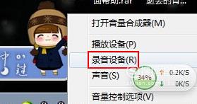 首先鼠标右键单击任务栏通知区域里面的喇叭图标,选择录音设备。