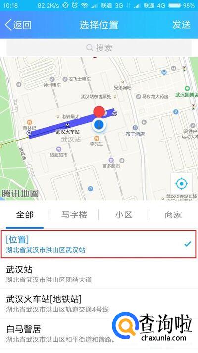 接下来,我们可以看到手机QQ显示的当然所处的位置即为我们所设置的地理位置信息,为湖北省武汉站。