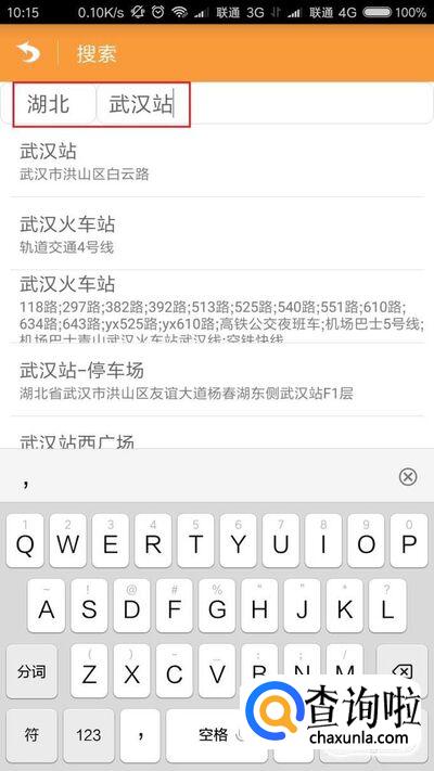 然后在接下来打开的页面中输入要穿越的地方,这里我选择的是“湖北省武汉站”。