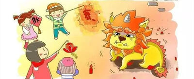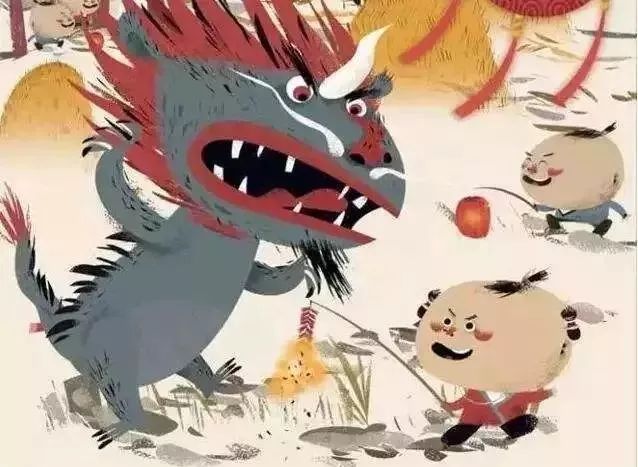 这样过了好多年,没出什么事情,人们对年兽放松了警惕。就在有一年三十晚上,年兽突然窜到江南的一个村子里。一村子人几乎被年兽吃光了,只有一家挂红布帘、穿红衣的新婚小两口平安无事。还有几个童稚,在院里点了一堆竹子在玩耍,火光通红,竹子燃烧后啪啪地爆响。年兽转到此处,看见火光吓得掉头逃窜。