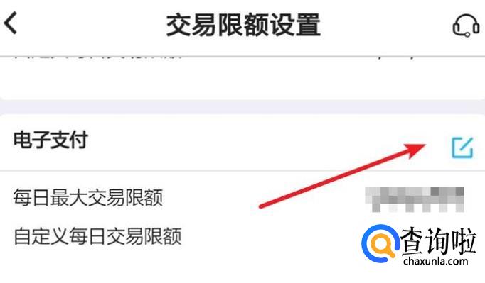 在交易限额设置页面找到‘电子支付’项,点击右边的编辑图标。
