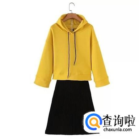 黄色卫衣配黑色长裙。黄色卫衣看起来比较减龄又活泼,如果想要淑女一点就可以配一条黑色长裙,又时尚又温柔。