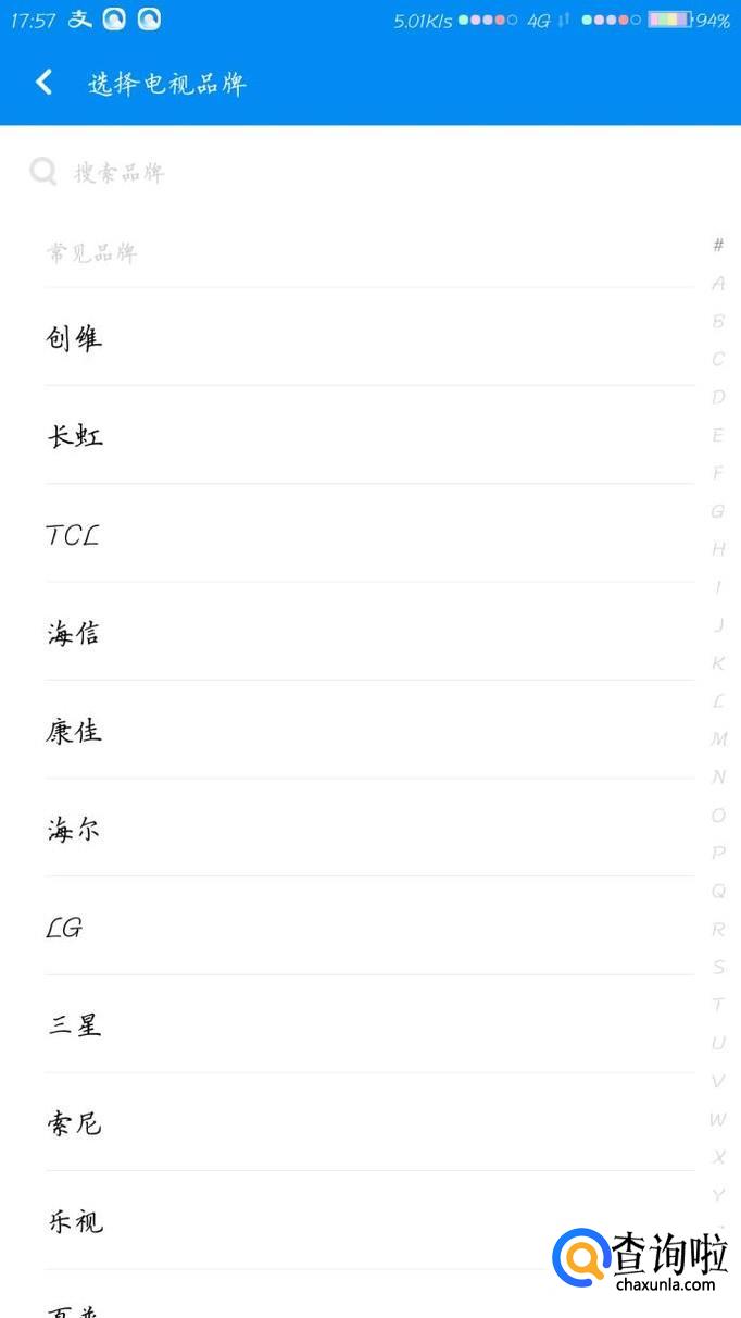 选择要遥控的设备,比如我想遥控电视机,选择电视机,然后选择电视机的品牌。