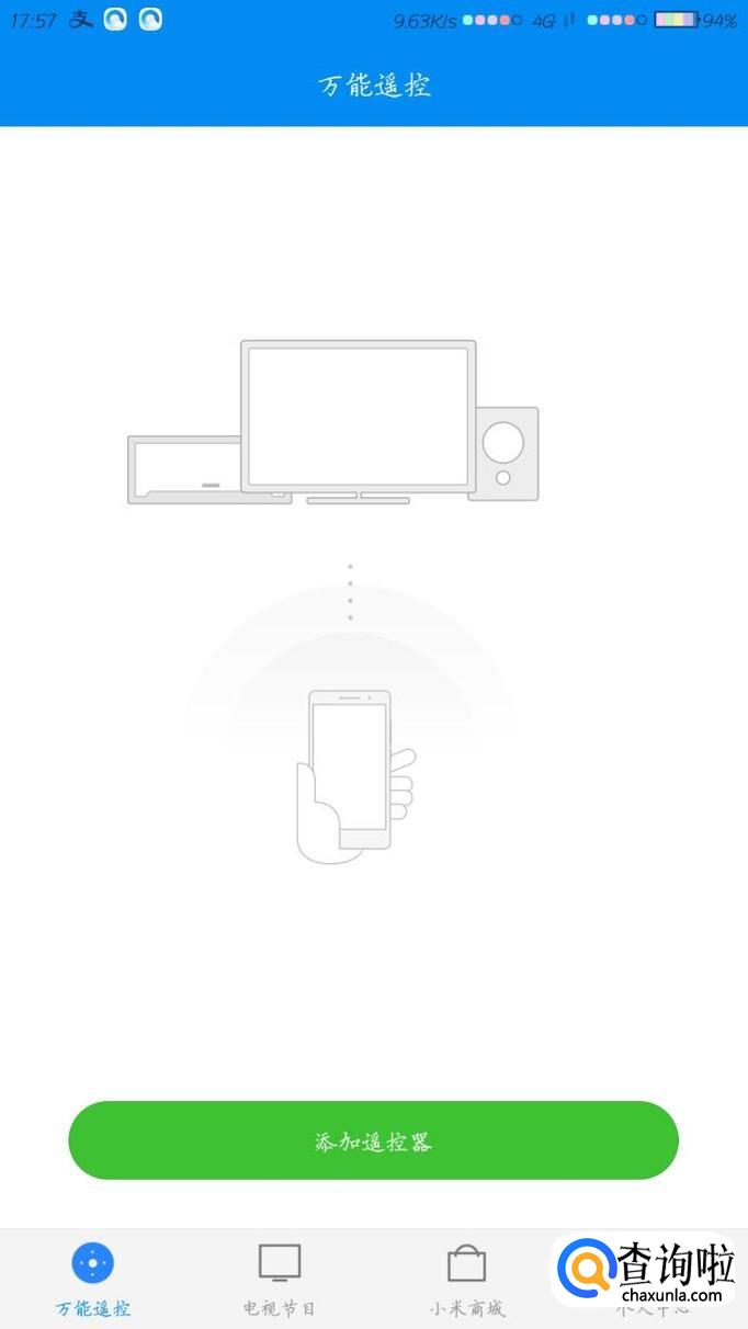 万能遥控是小米手机自带的应用,讲真的和遥控精灵比起来不是很好用,因为不能自己编遥控数据,但是基本的功能还是有的,打开万能遥控点击添加遥控器。