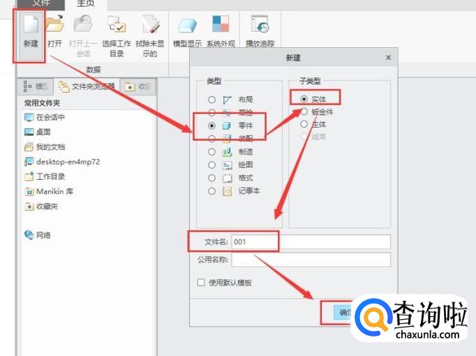 打开creo软件,创建一个新的零件,创建过程如图所示。