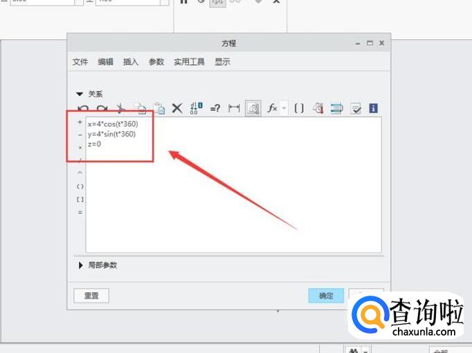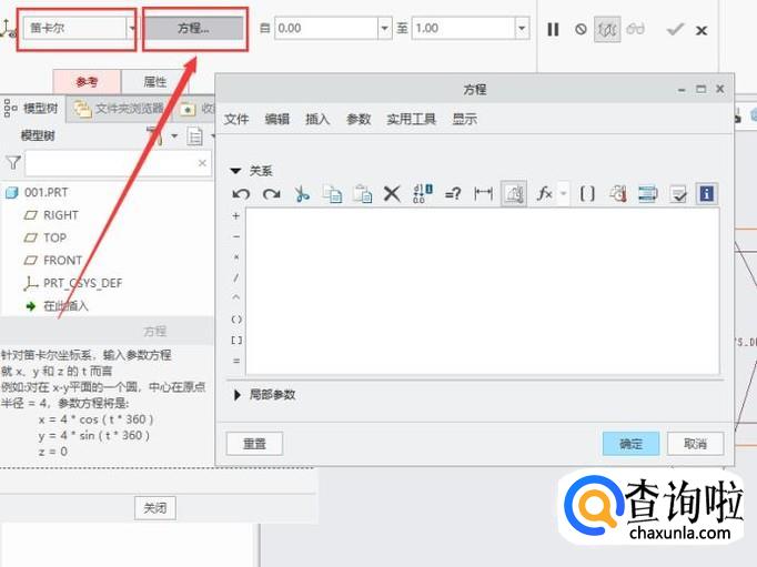 在这里以笛卡尔曲线方程为例创建曲线方程,点击“方程”,弹出新的对话框,如图所示。