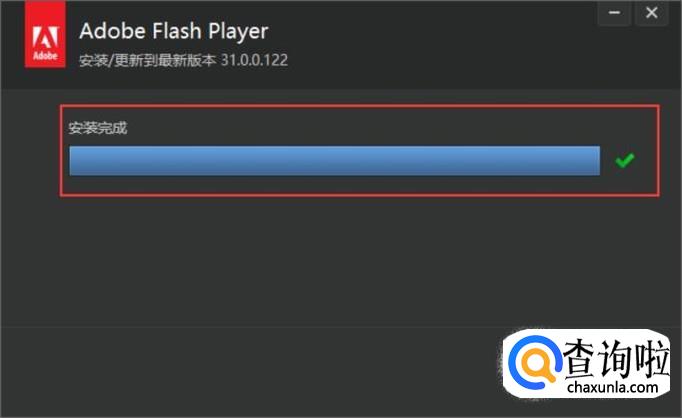 等待进度条读取完毕,flash软件就安装成功了。