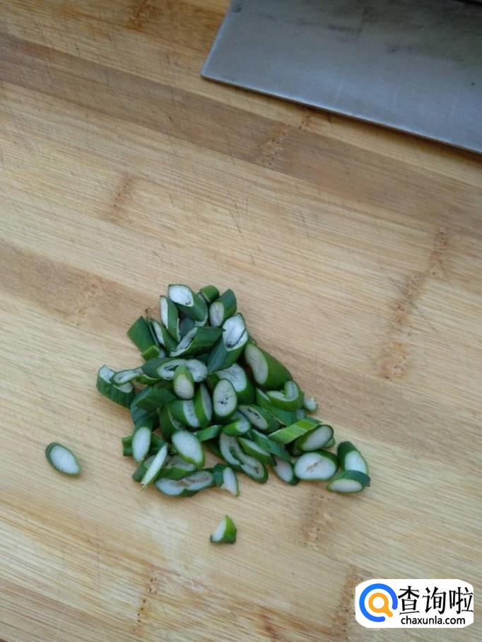然后将控干水后的韭菜切段,记住不要过长或过短。