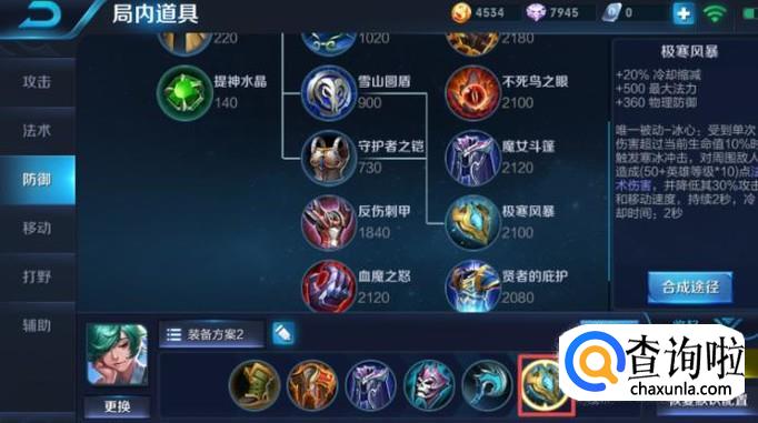 最后一件装备我们可以出极寒风暴,这个装包可以缩短我们技能的冷却时间,其次还能加法术伤害,加上庄周的被动技能,此时的庄周基本上在保护射手方面可以说非常强势了。