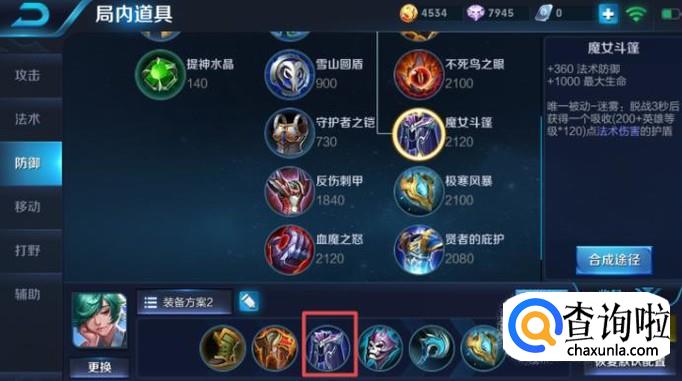 第三件装备,我们最好选择出魔女斗篷,这件装备的优势在于加了很高的法术防御,一般出到第三件装备的时候,对方的法师也会来骚扰我们的射手,此时的伤害很高,我们除了魔女斗篷也就不需要害怕法师了。